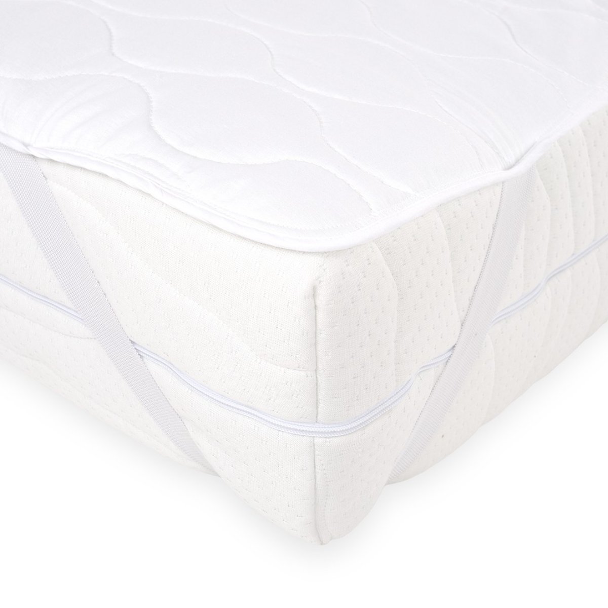 Kvalitní chránič matrace díky voděodolnosti umožňuje udržovat postel ve velmi dobrých hygienických podmínkách. Chránič je určen pro domácí použití, hotely, penziony, pečovatelské domy a všude jinde, kde jsou důležité vysoké hygienické standardy. Upevnění na gumičky na rozích matrace. Celek je lemován estetickým lemováním. Ultrazvukové prošívání zajišťuje voděodolnost a antialergické vlastnosti - materiály použité k výrobě. Podklad zajišťuje zdravý, hygienický a klidný spánek všem uživatelům. Podklad se skládá ze tří vrstev: vrchní vrstva hygienické podložky je vyrobena z prošívané látky - polyesteru střední vrstva je polyesterová vata spodní vrstva je polyuretanová membrána Hygienický podklad na matraci lze prát na 60° C - na jeho výrobu byly použity extrémně odolné materiály