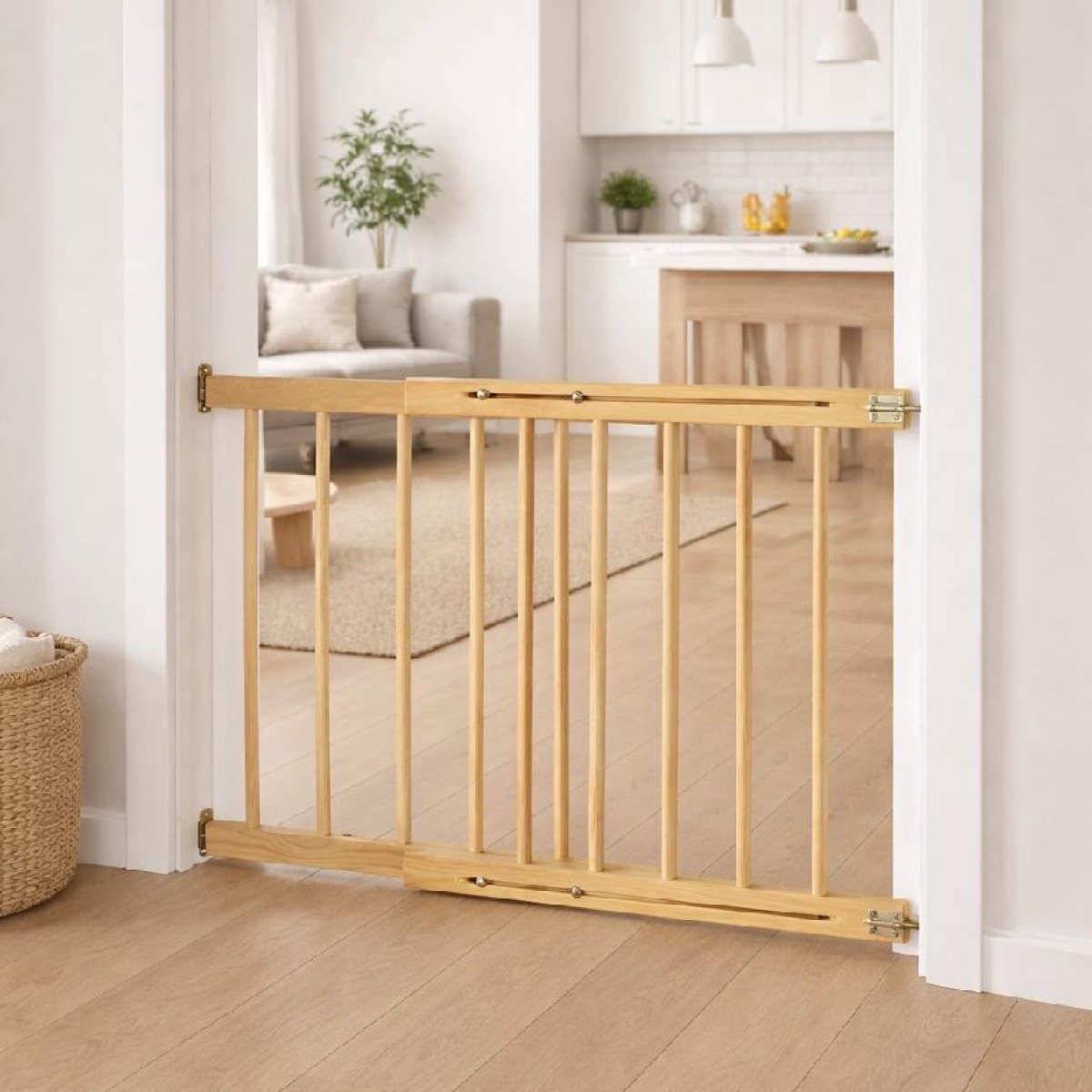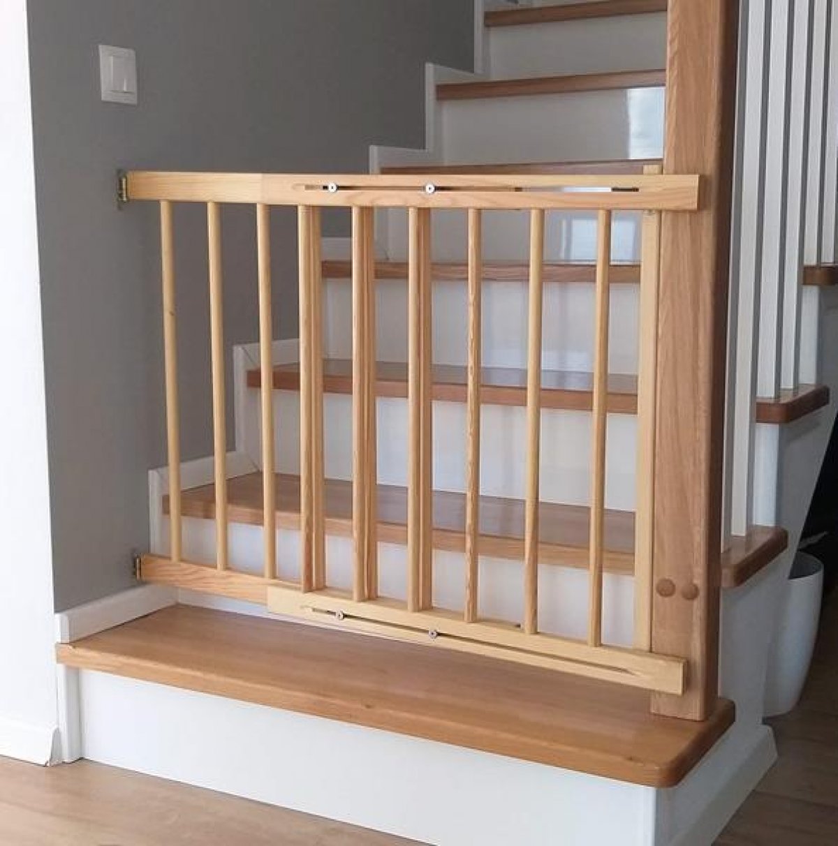Naše dřevěná bezpečnostní zábrana na schody a do dveří je navržena tak, aby poskytovala maximální bezpečnost dítěte při zachování moderního vzhledu interiéru.